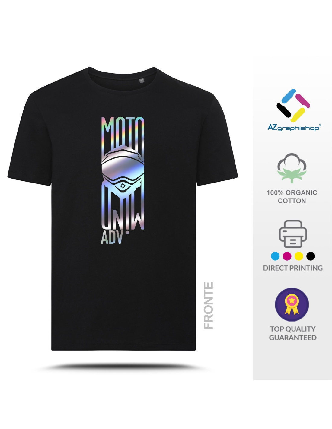 Das T-Shirt für "Moto Mind ADV" im IRIDESCENT-Stil TS-FM-089 wird von Az Graphishop hergestellt, einem Spezialisten für die Herstellung von personalisierten Kleidungsstücken mit Motorradgrafiken. Der Stoff besteht aus 100% halbgekämmter Ringspun-Baumwolle in der Version 300 Ash 98% Baumwolle und 2% Viskose und in der Version 350 Mittelgrau meliert 85% Baumwolle und 15% Viskose . Diese Zusammensetzung garantiert überlegene Weichheit, bessere Atmungsaktivität und eine natürliche Passform, die sich ohne Steifheit an den Körper anpasst.