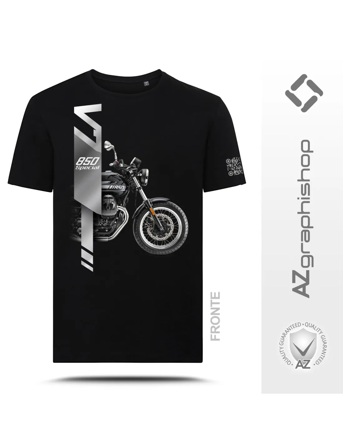 The T-shirt for Moto Guzzi V7 Special Silver Stripe Monochrome TS-FM-131 is produced by Az Graphishop, a specialist in creating custom garments with motorcycle graphics. The fabric is made of 100% semi-combed Ringspun cotton, in the 300 Ash version 98% cotton and 2% viscose and in the 350 Medium Grey Melange version 85% cotton and 15% viscose . This composition guarantees superior softness, better breathability and a natural fit that adapts to your body without stiffness.